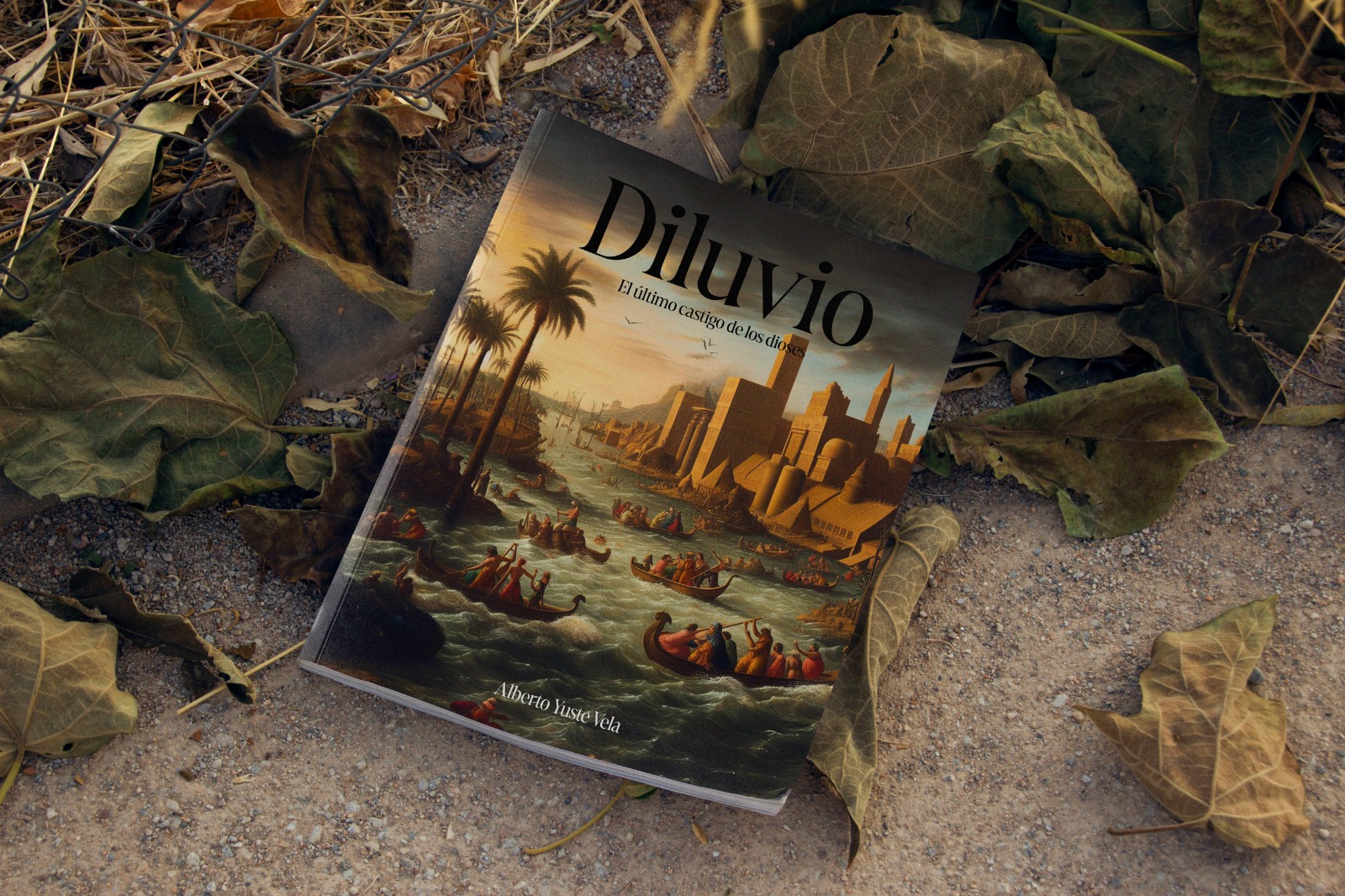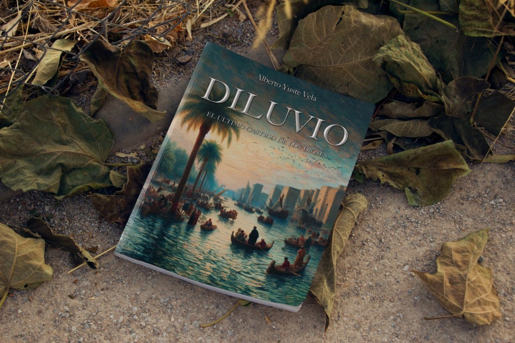 Estos diseños han sido posible gracias a Superfluido. Una empresa de Úbeda con la que trabajé en una anterior etapa laboral en mi vida. La portada de Diluvio fue fácil, me sugirió tres imágenes realizadas con la IA y la primera de ellas me encantó.