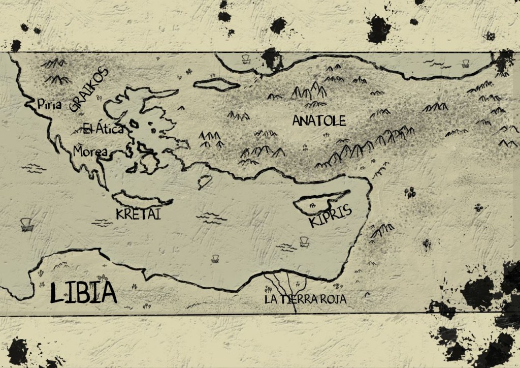 No había hablado de los mapas ni del ilustrador que me los hizo ya que era algo que había encargado antes de comenzar con el blog, pero debido a que le he encargado hace poco otro mapa de Narim (Kengi) más la región de Dilmún al sur, he decidido que era hora de dedicarle una entrada tanto a los mapas como al ilustrador.